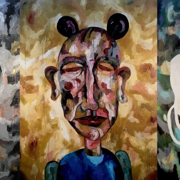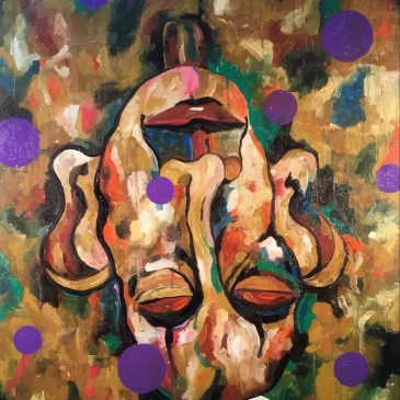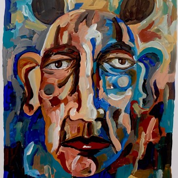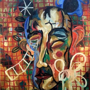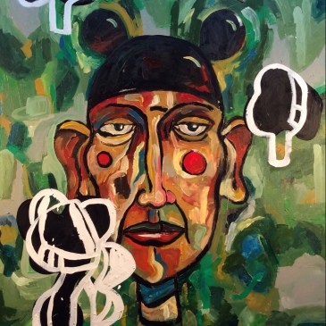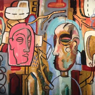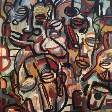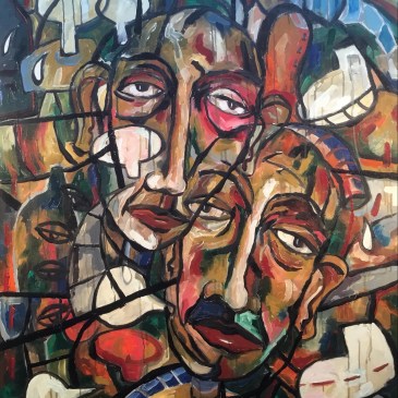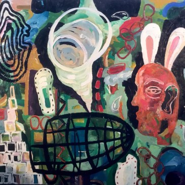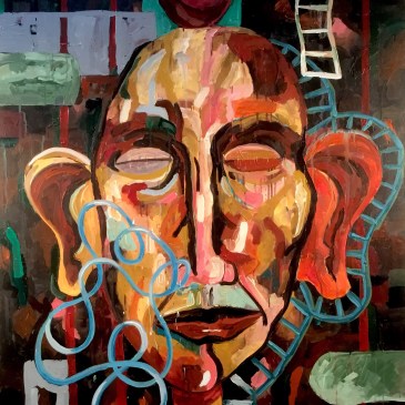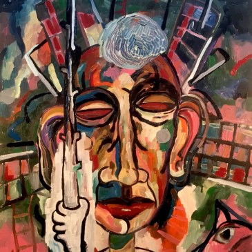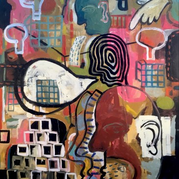 The Suburbanite and a Sea of Fences, oil on canvas, 36” x 48”
